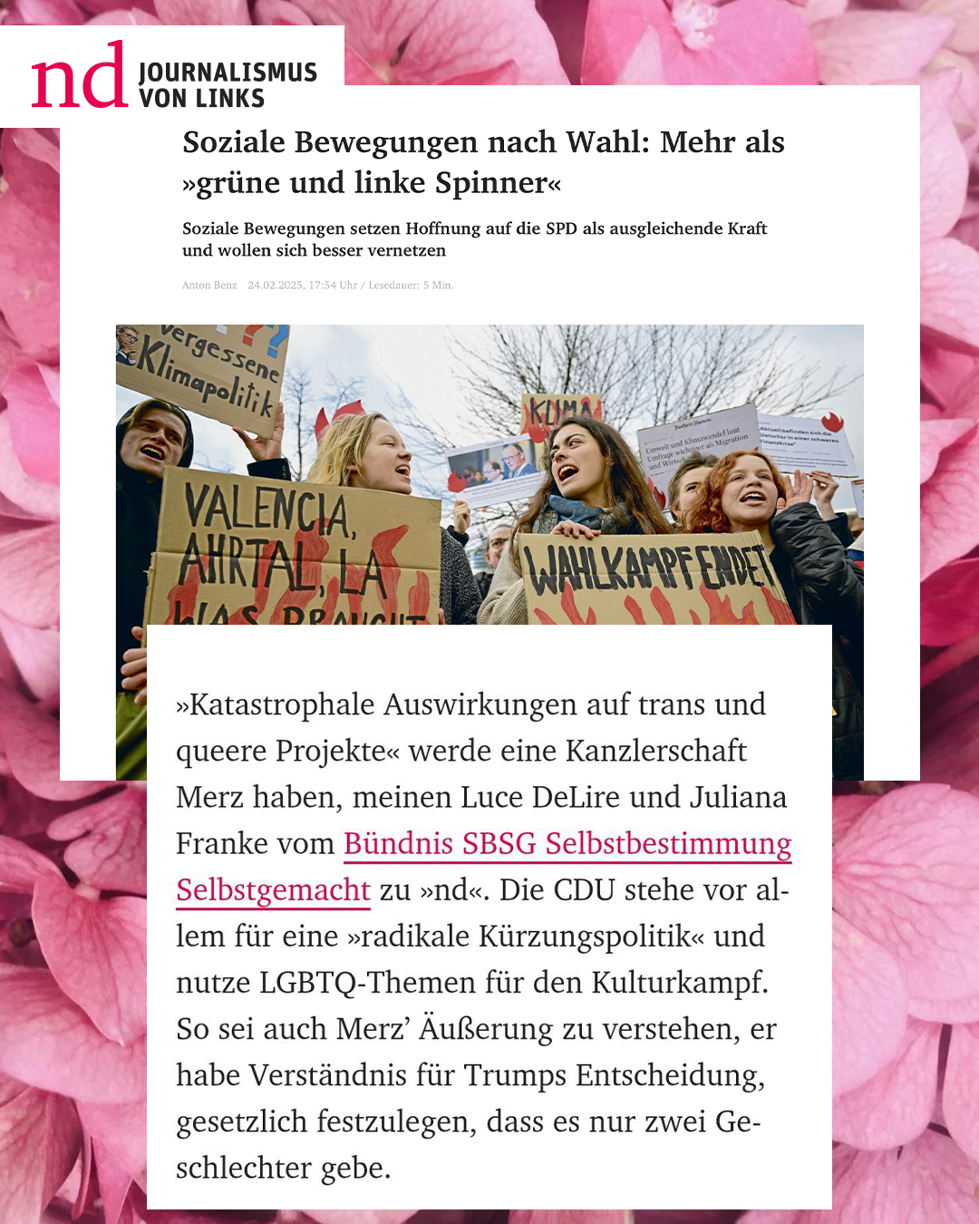 For Selbstbestimmung Selbstgemacht, creative stewardship was provided as Head of Design, refining the visual identity across all platforms. Full-service production – photography, videography, and graphic design – supported community engagement and event visibility, strengthening the organization’s visual voice.